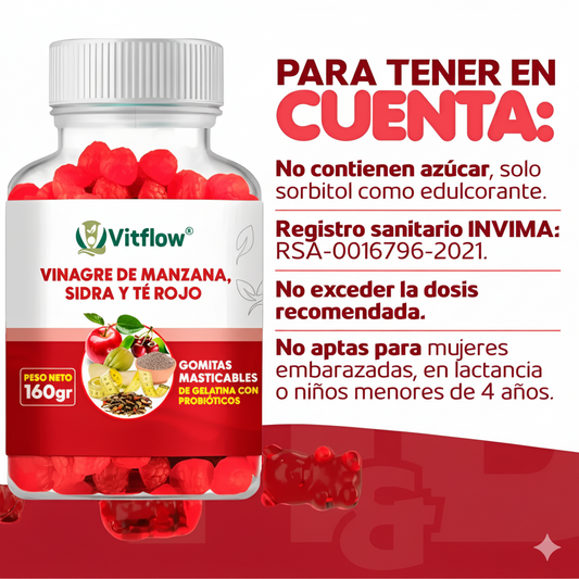 VitFlow® – Gomitas con Vinagre de Manzana, Sidra y Té Rojo